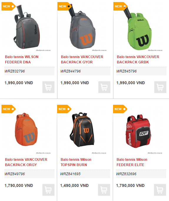 Trên đây là 6 mẫu Balo Tennis Wilson mà Trang Nguyên giới thiệu tới quý vị trong tháng 8 năm 2017 này. Xin cảm ơn quý khách đã ủng hộ và luôn theo dõi các hoạt động của shop!