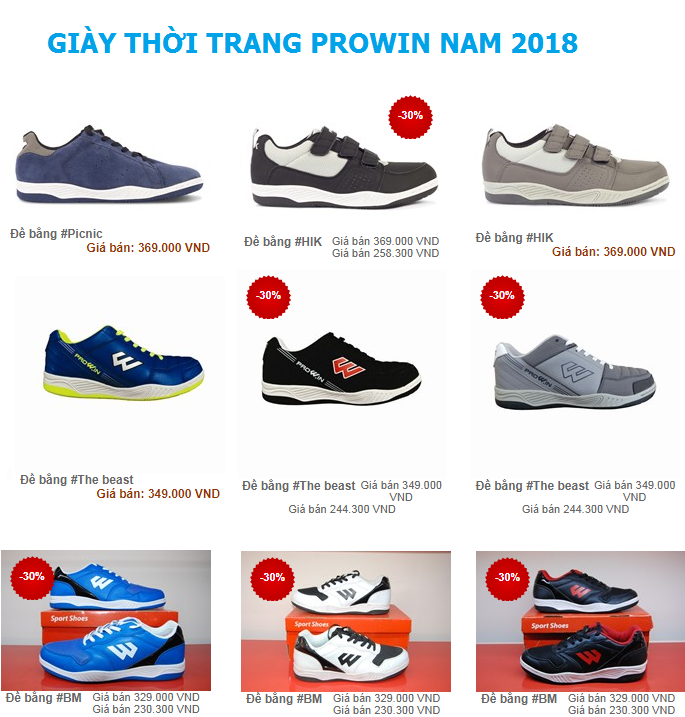 Để chào đón các mẫu giày mới ra trong năm 2018 của mình, Prowin- Nhà Sản Xuất Giày Thể Thao đang có chương trình khuyến mại GIỚI THIỆU VÀ TRI ÂN khách hàng tới 30%.