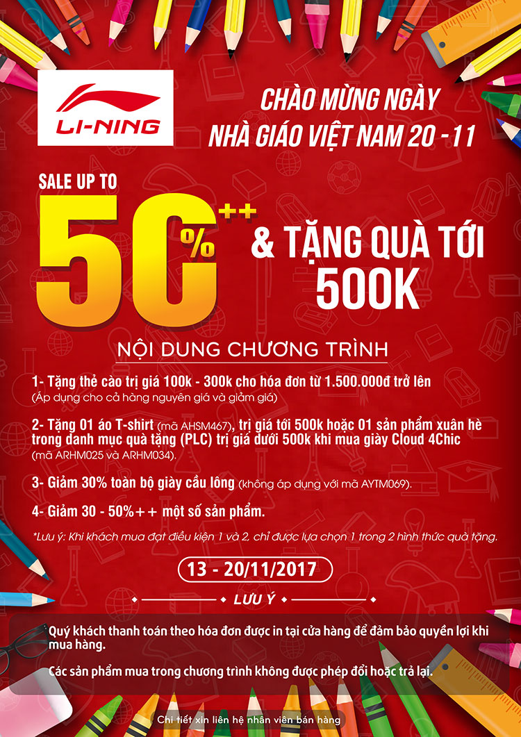 LI-NING CHÀO MỪNG NGÀY NHÀ GIÁO VIỆT NAM 20-11 GIẢM TỚI 50%++