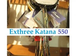 Vợt cầu lông Exthree Katana 550 có 3U&4U, tay cầm G2, vợt căng được tối đa 26lbs (12kg). VVợt có 3 màu Vành xanh, Cam Bạc, Glaucum, Katana 550 là dòng nặng đầu, thân vợt cứng, khung vợt cải tiến tăng 5% tốc độ lướt và xoay.