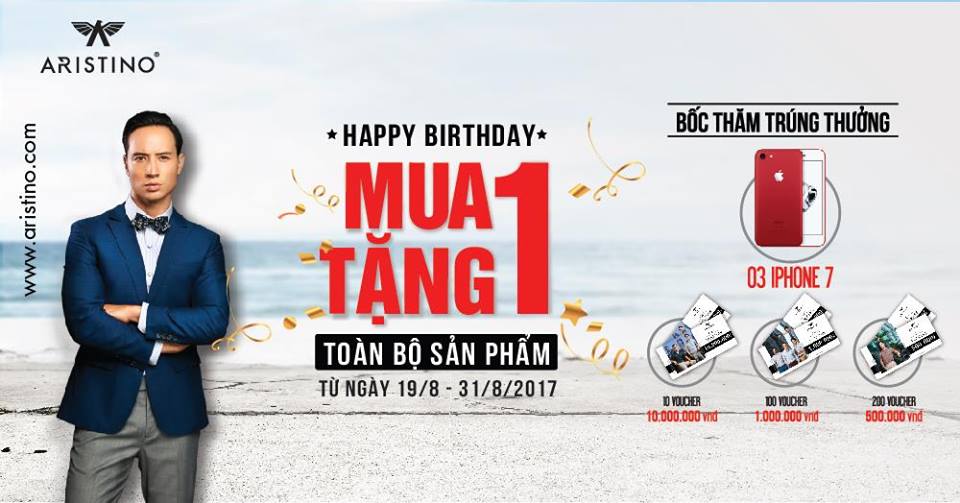 (Xem các địa chỉ showroom và đại lý áp dụng chương trình tại: http://aristino.com/mungsinhnhat/)
