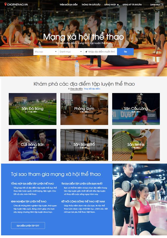Mạng xã hội thể thao là trang tìm kiếm địa điểm, trung tâm tập luyện thể thao, các bài tập, kinh nghiệp chia sẻ và là địa chỉ kết nối cộng đồng