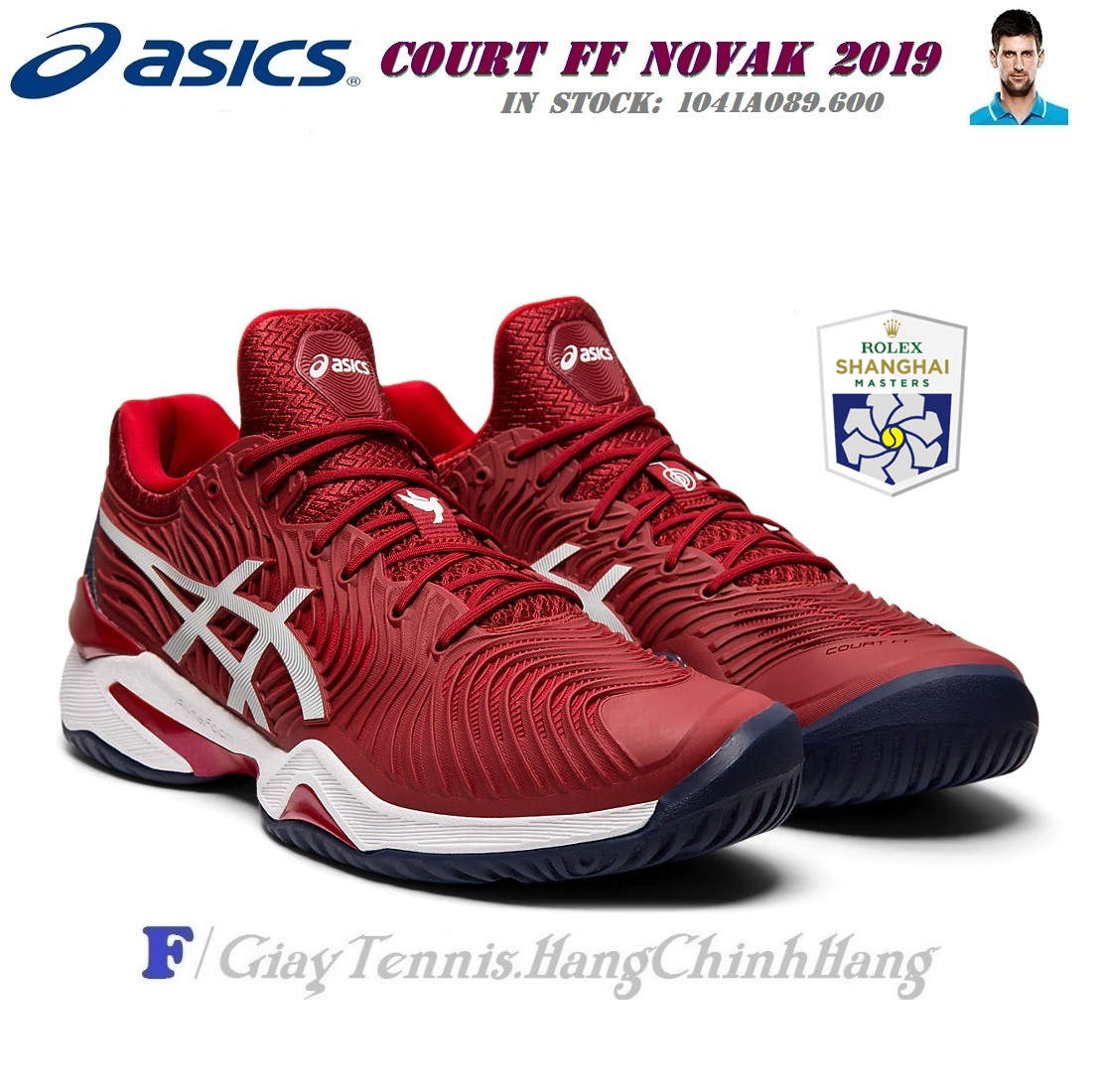Giày Tennis Asics Court FF ™ Novak 2019 Burgundy/White (1041A089.600) – ShangHai Open 2019 | 1041A089.600 | Asics