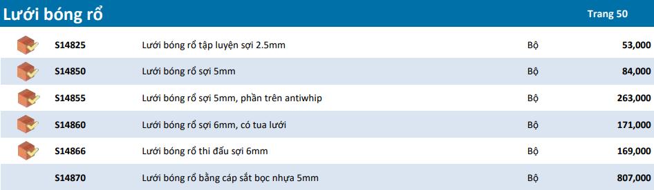 - 1. S14825 -Lưới bóng rổ polypropylene Ø2.5mm màu trắng Giá: 53.000đ/Bộ (2 lưới)