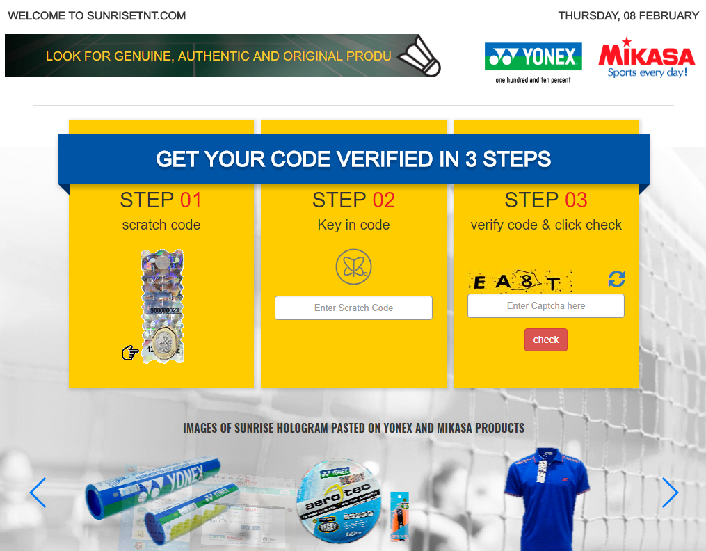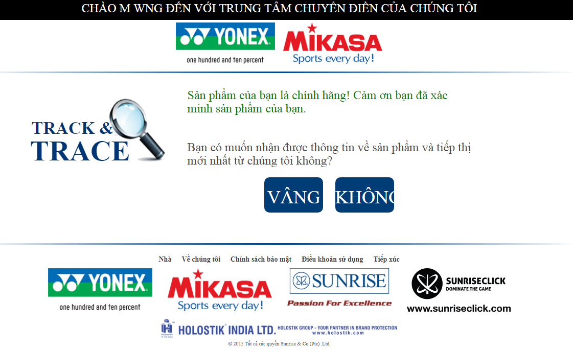 Như vậy, nếu trường hợp khách hàng cần giải thích về sản phẩm Yonex thì bạn sử dụng trang sunrisetnt.com và hướng dẫn khách kiểm tra bằng cách điền mã cào như hướng dẫn ở trên. Đây là cách giải thích khoa học và chính xác nhất theo hướng dẫn của nhà PP.