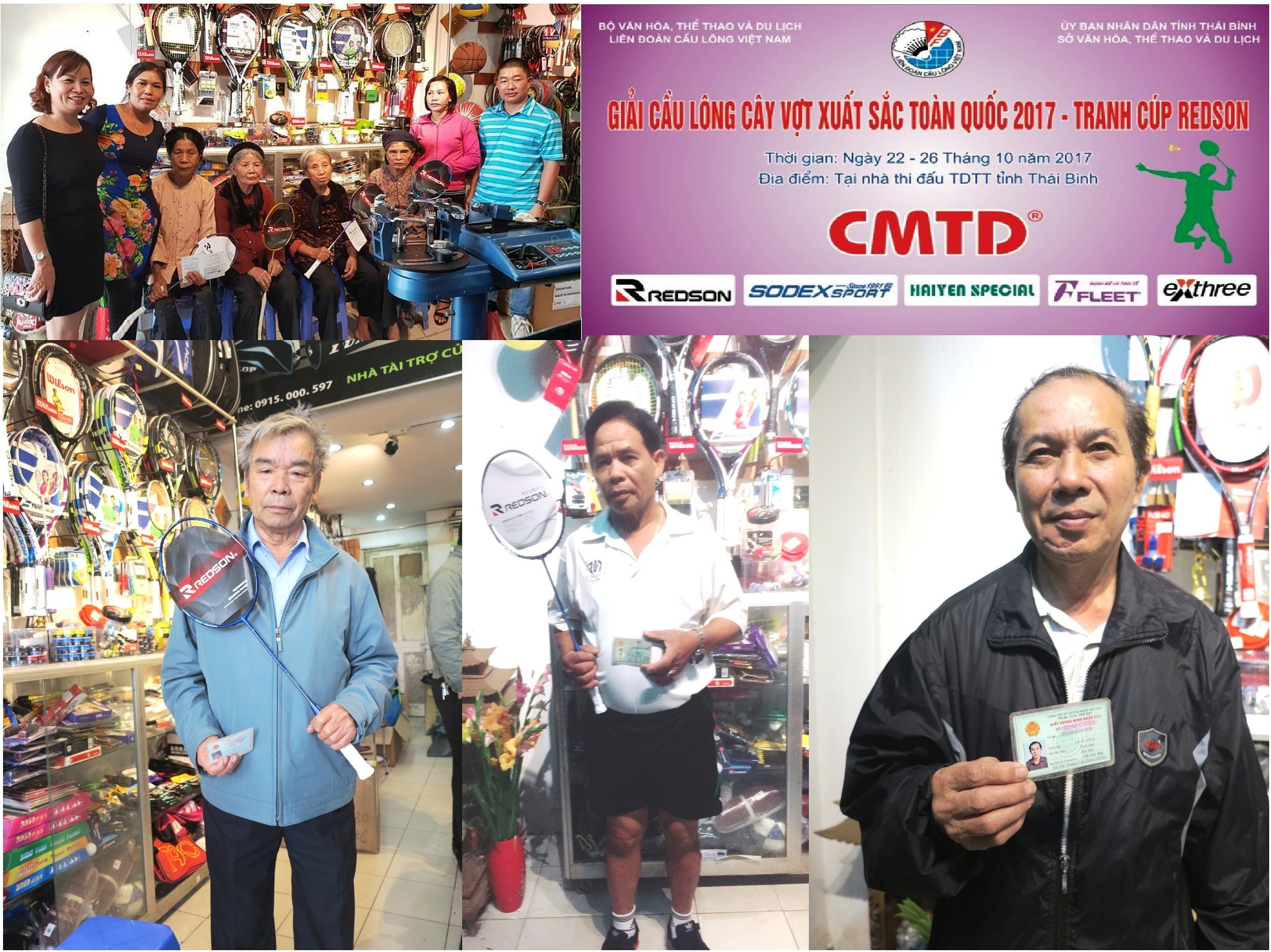 Nhân Dịp Giải Cầu Lông Cây Vợt Xuất Sắc Toàn Quốc 2017 – Tranh Cúp Redson diễn ra tại nhà thi đấu TDTT Tỉnh Thái Bình vào ngày 22 – 26 tháng 10 năm 2017 vừa qua. Hãng Vợt Redson ( Nhật Bản ) có chương trình khuyến mại đặc biệt: Giảm % theo độ tuổi của khách hàng.