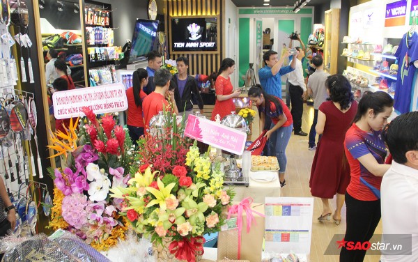 Cửa hàng của huyền thoại sống làng cầu lông Việt đông đúc ngày khai trương.