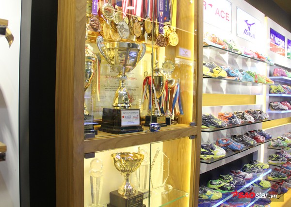 Một góc cửa hàng được Tiến Minh chọn làm nơi trưng bày những danh hiệu trong sự nghiệp.