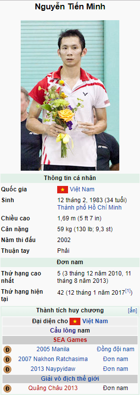- ^ “Nguyễn Tiến Minh trên bục nhận huy chương cầu lông thế giới”.