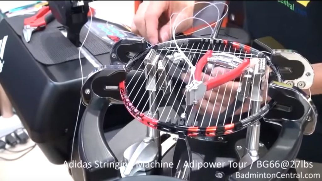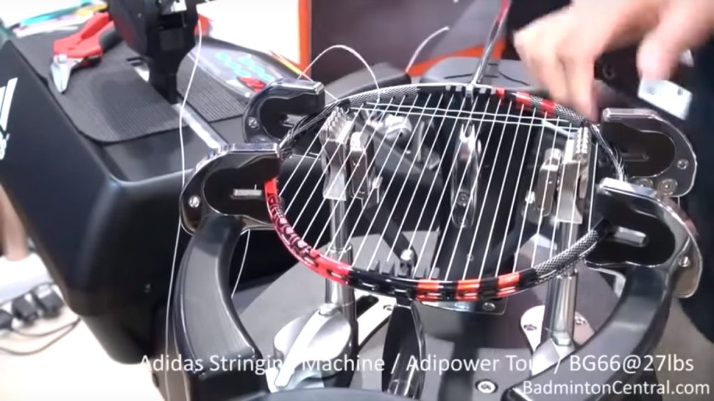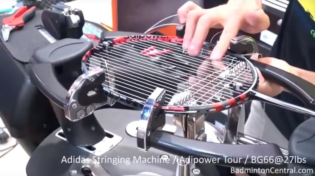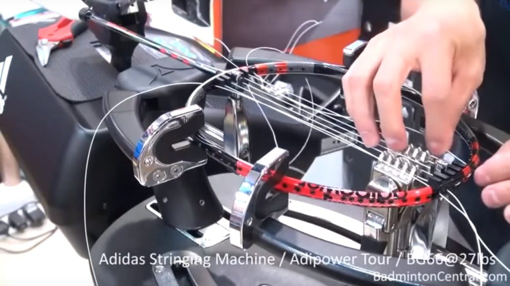 - Đoạn video dài hơn 19 phút cả đan và căng bằng máy điện tử Adidas, sử dụng Vợt cầu lông Adidas Adipower Tour và cước BG66, mức căng 27lbs