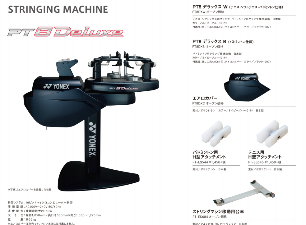 Trang Nguyên Sport sưu tầm và chia sẻ Catalog giới thiệu về chiếc máy điện tử căng vợt của Yonex PT 8 Deluxe năm 2018 với các chi tiết cầu hình và phụ kiện kèm theo